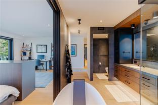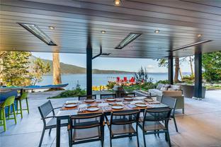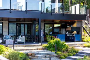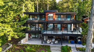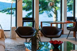 Welcome to this modern waterfront estate in North Saanich, Vancouver Island. On 1.02 acres of low-bank oceanfront, this 2024 constructed luxury home offers privacy and sweeping views of Salt Spring Island’s Mount Tuam Reserve. Voted best Kitchen (over $150k) & Bathroom (over $75k) at the VI Building industry awards, this 7,000-sqft main residence features 4 bedrooms, 7 bathrooms, & a double garage. A zen garden leads to an open main floor with floor-to-ceiling windows. 2 primary suites upstairs include walk-in closets, ocean-view balconies, & a private office. The lower level offers a theatre, wet bar, outdoor kitchen, & a covered patio with a 350-sqft oceanfront deck. A 990-sqft guest house has its own kitchen, 2 bedrooms, 2 bathrooms, & ocean-view deck. A detached three-bay garage adds storage. Smart home tech, energy-efficient systems, & soundproofing enhance comfort & sustainability. Minutes from Swartz Bay Terminal & Victoria Airport, this estate offers opulent waterfront living.