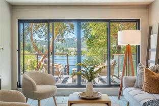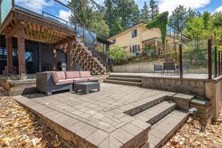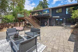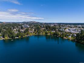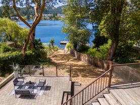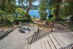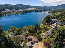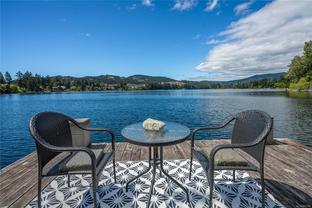 Lakefront living on Langford Lake this executive home is only second to the town centre yet offers full waterfront privacy. On an almost half an acre of land there is no need for a summer home when your main home can be both. The current owners have made many updates and upgrades to ensure luxury living. Situated well off the main road for total privacy this home offers a desirable floor plan with main level living and a suite below. With walls of glass towards the lake you will take in panoramic views from both the great room and the primary retreat. The large kitchen with updated appliances, shaker cabinets, large island, gas cooktop and also has a large window to bring in ample natural light from the lake beyond. The wide plank hardwood floors, board and batten ceiling, multiple skylights, wood fireplace and coved wood ceiling bring charm and ambiance warming the space and creating a relaxing environment. With three bedrooms up, a fourth down with a rec room and a separate suite this floor plan can accommodate a large family or provide income potential. The one bed and den suite is spacious and bright and is situated to also take in breathtaking sunsets and views of the lake. Loads of outdoor space with multiple patios, fire pit, green space, gardens, very large storage shed and a big dock with its own title. Swim all day long with ideal sun exposure to enjoy every last minute of day time. Double car garage, gated driveway, loads of parking and even covered RV parking. Langford lake is an electric motor only lake to ensure serenity and peace, residents putter around on their floating docks waving at one another creating a charming water community. You are steps to YMCA and very easy access to the highway, only seconds away from every amenity you could want or need. This home offers a lifestyle to be envied and is an extremely rare opportunity, call today for your private tour.