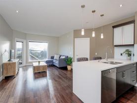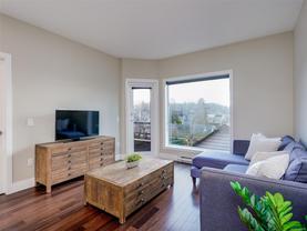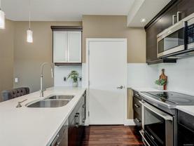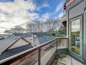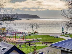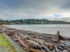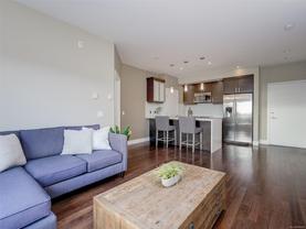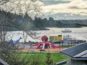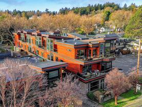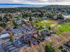 Direct and unobstructed OCEAN VIEWS from all principle rooms in this bight and modern 2 bed, 2 full bath condo. The "Promenade" is situated in the heart of the CADBORO BAY VILLAGE only a few steps from the sandy beach @ Gyro Park. In fact, you can watch kids playing on the Red Octopus from your South Facing Balcony. Inside you will find an amazing floor plan with the bedrooms on opposite sides of the open kitchen & living room. The features include hardwood flooring, quartz countertops, wood cabinets w/soft close doors, S/S appliances, in-suite laundry, 9' ceilings and heated tile floors in both bathrooms. A gorgeous ensuite off the master bedroom and convenient in-suite laundry make this a very comfortable place to live. Also, 1 covered parking stall and a secure storage locker are included. Walking distance to the University of Victoria and so many other amenities like Pepper's Foods, Smuggler's Cove Pub, and much more. Pets and rentals allowed. Book a viewing while you still can!