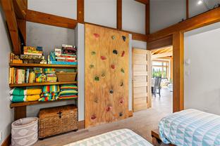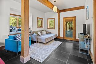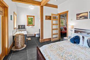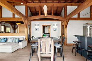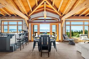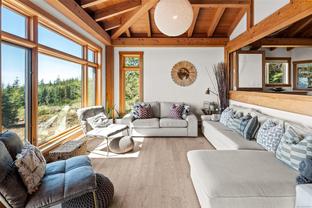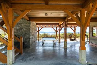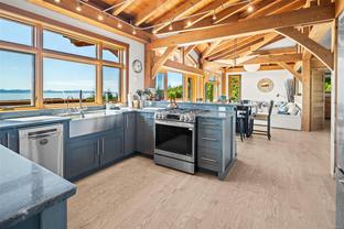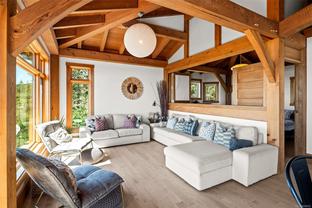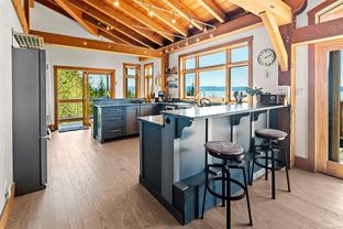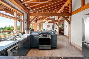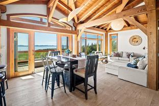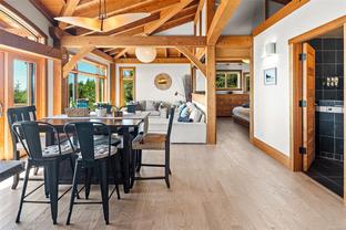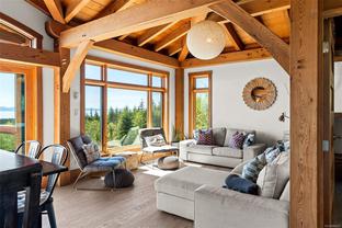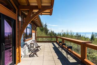 The ultimate escape on the West Coast. This modern Timber Frame home sits high above Jordan River & offers a 180’ degree ocean view & proximity to the endless beach walks, hiking trails, kitesurfing & the best west coast surf on Vancouver Island. The traditional timber frame architecture offers a modern yet inviting interior, incorporating natural materials from Vancouver Island such as western red cedar, basalt tiles, hardwood floors & vaulted ceilings. The elevated main floor exudes the warmth of finely crafted wood, built by Purcell Timber Frame Homes. The 2nd bedroom upstairs easily hosts two twin beds & features a small climbing wall to add to the fun. The ground floor offers a very special & private guest suite. Outside is a large 6 person hot tub & outdoor rain shower while the covered patio provides shade from the warm south facing exposure. This property is the perfect balance between rest & relaxation while having the best of BC's coastal recreation at your doorstep!