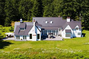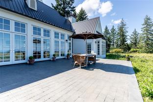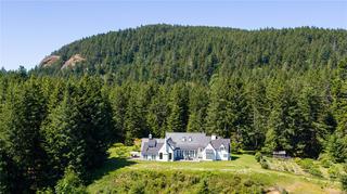 *FOREIGN BUYER BAN EXEMPT* 71 acres of alpine living looking east over the Gulf Islands to the Cascade Range. This estate's French Country Manor sits 350m above sea level, backed by Mt Maxwell Provincial Park’s 1100 hectares of old-growth. This serene landscape of meadows, wildflowers, and statue-guarded trails represents the ultimate in seclusion and immersion into nature. As a private residence or retreat, it is superbly equipped. All bedrooms feature ensuite bathrooms, while the primary suite sits above the recreation wing with its fitness/massage rooms, office, and private entrance. Power and water are assured by a new well/UV system with 2,000 gallon cistern, as well as a backup generator and 5000L propane tank. To the west, a pagoda-inspired sauna sits amongst the trees adjacent one of 3 serene ponds. Gardens and horse facilities including 3 paddocks, 2 horse stables and pasture to the north are complemented by a timber-frame barn with RV hookup.