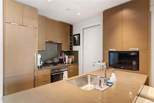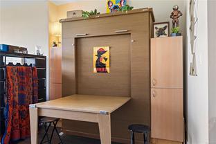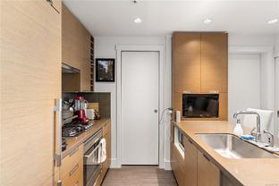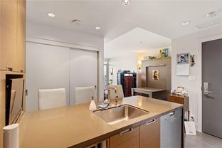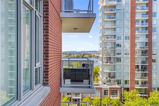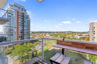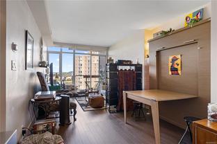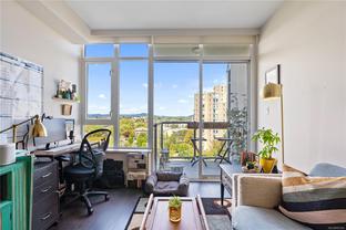 This spacious studio condo in the sought-after Promontory by BOSA offers west-facing views and air conditioning perfect for staying cool while enjoying spectacular sunsets. Larger than most studios, this well-designed home features floor-to-ceiling windows that flood the space with natural light, plus a full-sized kitchen with appliances, a gas range, quartz waterfall countertops, and a stylish tile backsplash. The smart layout includes a quality Murphy bed, hardwood floors throughout, and a laundry room with pantry for extra storage. Set in a modern steel and concrete building with concierge service , social lounge, and a fitness centre, this pet-friendly and fully rentable unit includes secure parking. Complete with parking, storage locker, bike storage, and visitor parking. Steps from the ocean, downtown Victoria, the Galloping Goose trail, groceries, and more.
