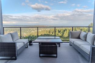 Perched in one of Bear Mountain’s most prestigious locations, this custom-built residence offers sweeping, unobstructed views of the ocean, mountains, and city skyline, captivating from sunrise to sunset. Meticulously curated for the discerning buyer, the home welcomes you with a grand foyer, soaring ceilings, exquisite finishings & expansive windows that flood the space with natural light & elegance. The chef-inspired kitchen impresses with top-tier appliances, a generous island, & a separate prep kitchen. Radiant heated tile floors, Brizo fixtures in ensuite, & Buster+Punch hardware bring modern refinement. The spa-like ensuites offer true sanctuary, combining tranquility and indulgence. With two primary bedrooms upstairs & a third bedroom below, it blends privacy and versatility, ideal for multi-generational living. Complete with an elevator to ensures effortless access across all levels & a separate legal one bedroom suite. This a lifestyle masterpiece.
