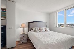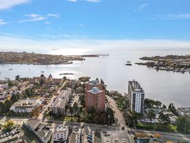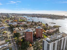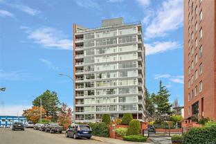 *PERFECT LOCATION with Stunning views & Sunsets from this 11th Floor 2 bedroom Corner suite. Close to the Ocean and the heart of the City. Bright & Spacious with both East & West exposures. Enjoy Panoramic views of the Sooke Hills & surrounding area from your Private balcony. Recently updated throughout: New lacquered soft-close Kitchen cabinets & side Beverage bar with storage, Modernized Bathroom & easy-care vinyl flooring throughout. The Master bedroom has a large walk-through closet. Across the street from the famous Songhees Walkway which follows the ocean, making for an easy walk to Victoria's inner harbour. This well-managed Complex includes many amenity rooms: 2 exercise rooms, a Lounge/meeting room, workshop, car washing facility. Comes with 1 Underground Parking & Storage locker.