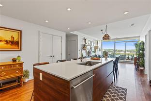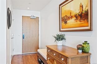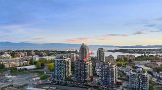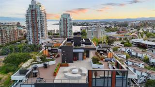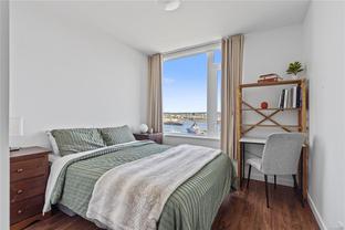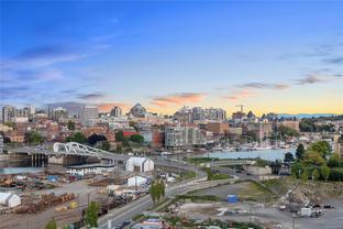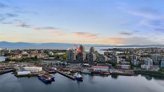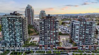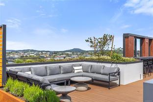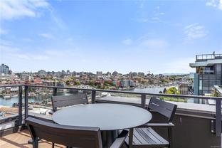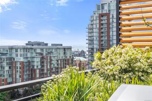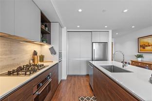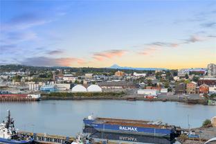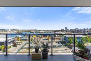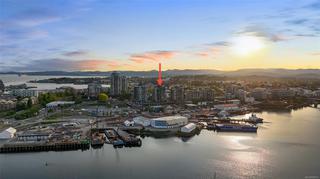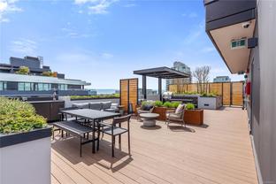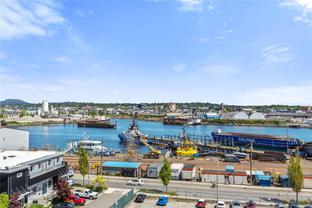 Introducing a luxurious 2-bedroom, 2-bathroom suite at Dockside Green by BOSA Development. Built in 2023 and still under warranty, this stunning home boasts sweeping views of Victoria, Mount Baker, the Empress, and the ocean, all from a private 174 sq ft balcony. The chef’s kitchen features a quartz island with seating for four, gas range, statement marble backsplash, and ample cupboard space. The spacious primary suite includes a walk-through closet and spa-inspired ensuite with a no-step shower and double sinks, while the second bathroom offers a deep soaker tub. Enjoy a state-of-the-art gym - one of the best in the city, a rooftop patio with 3 BBQ areas, a gas fireplace and plenty of space to relax and soak up the sun, pet wash, social lounge and secure bike storage. Just steps to Galloping Goose Trail, a 5-minute walk to Il Terrazzo, Boom + Batten, the Songhees Walkway & downtown’s finest restaurants. Includes 1 parking space, storage locker, allows 2 dogs with no size restriction.