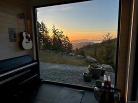 A rare chance to become the next steward of this extraordinary 155-acre forested sanctuary, where panoramic ocean views and pristine natural beauty create a truly magical setting. Complete privacy, peace and endless possibilities. Perched to capture the stunning vistas is a beautifully crafted Hewing Haus—a modern, move-in-ready 600 sq ft cottage featuring two cozy bedrooms and a gas fireplace. A charming 108 sq ft separate studio (also Hewing Haus) adds flexible space for guests, creative pursuits, or a quiet retreat. With four water wells and two septic fields already in place, this property is primed for your future dream home. Fully connected to BC Hydro and equipped with a backup generator, you’ll have reliable power no matter the weather. Whether you're looking for a peaceful weekend getaway, a self-sufficient homestead, or a legacy property to build your vision, this breathtaking island escape offers unmatched potential.