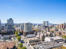 Absolutely gorgeous 1 bed 1 bath unit now available in the sought after 989 Johnson! Purchased directly from the developer, and now ready for new owners, this coveted unit located on the NW corner of the West building and perfectly situated on the 14th floor, you will love the spectacular views from every window! Amazing sunsets! Fabulous steel and concrete construction. Hardwood floors, quartz countertops, top quality fit and finishing throughout. Pet friendly! Plenty of natural light. Secure underground parking spot included! This functional floor plan truly is an urban oasis with a vibrant downtown living style! If you love Boutique shops, cafes, exceptional restaurants, local grocers, pubs, famous Beacon Hill Park, Dallas Road oceanfront plus live theatre, fitness centres and spa options - then this is for you. Investor alert: Invest now for a long term financial gain in this solid building. You'll be glad you did. Welcome home!
