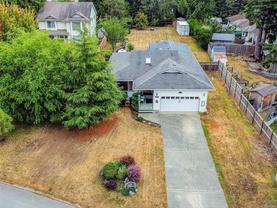 Looking for space, privacy, and comfort - all on one level? This beautiful 1996-built rancher delivers it all, tucked away in a lovely, quiet neighbourhood. Offering 3 BED & 2 BATH, this home spans over 1,800 sq/ft of comfortable living space. Enjoy a charming oak kitchen w/an eating area, separate dining room, & large formal living room. Cozy family room features a brand-new gas FP & slider to the entertainment-sized deck. Primary is a showstopper - an expansive space w/its own deck access, large WIC w/built-ins & window, & stunning 5-piece spa-like ensuite. 2 more nicely sized rooms, 4-piece main bath, & separate laundry w/walk-through to the dbl garage complete the interior. The heated crawl is perfect for extra storage. Outside, you'll find loads of parking & space for a potential tiny home. The yard is truly a haven—dead flat, fully fenced, private, & landscaped on a 0.33-acre lot. Ideally located close to schools, trails, and just minutes to the town core - this home has it all!