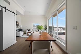 Step into a life of luxury in the south facing 2 bed + den, 3 bath Bellus penthouse unit at The Proxima. This unit truly has it all from the massive 445 sqft, sun-drenched balcony w/ straight view down to the ocean, to the soaring vaulted ceilings, oak engineered hardwood flooring, and two parking spots. Finished in our Lumen colour scheme by Spaciz Design, the kitchen offers two-toned cabinetry, quartz countertops, a large waterfall eat-in island, and top of the line stainless steel Fisher & Paykel appliances. Located in the heart of Esquimalt Village, The Proxima is perfectly positioned for a life full of adventure, experiences, & amenities w/ Saxe Point Park, local breweries, Esquimalt Market, shopping, & the Archie Browning Sports Centre just a stone’s throw away. Brought to life by GT Mann Contracting, whether relaxing on the sunny balcony, working out in the state-of-the-art gym, visiting the atrium or courtyard, residents can live life their way at The Proxima.