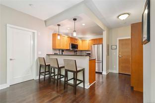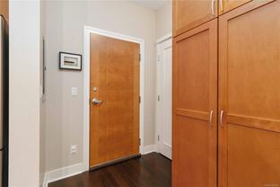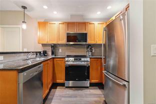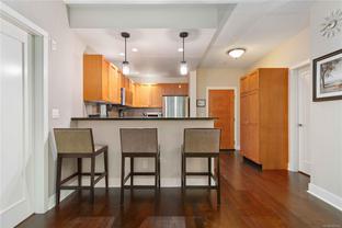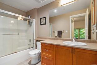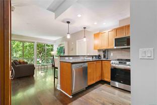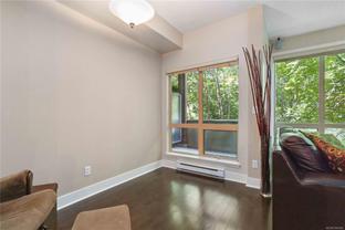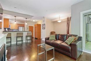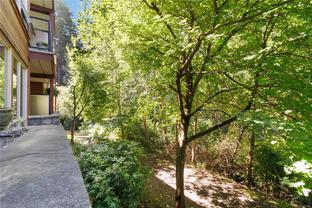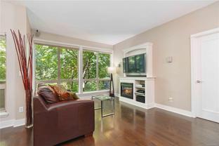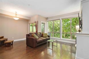 THE POWER OF TWO ... 2 LCP PARKING STALLS in UNDERGROUND SECURED Parkade (this ORIGINAL OWNER purchased 2nd stall at time of construction)...2 BALCONIES to take in the GORGEOUS PRIVATE TREED VIEW... 2 BATHROOMS. *Sought-after Latoria Walk community where you'll find Olympic View Golf Course & a huge walking trail system at your doorstep; Red Barn Market just a few buildings away; Royal Bay Shopping Centre within walking distance. Easy ground floor access with unit located on the back side of the building, where being above grade allows for privacy on the balconies. Spacious open concept layout with a full wall of oversized windows to capture the gorgeous view. Kitchen offers granite counters, stainless appliances (micro & oven new '24), eating bar & pantry closet. Dining area works well as an office area. Bedroom has a large walk-in closet & 4pce ensuite. Bike hooks installed for storage in parking stall. *Measurements taken from Strata plan/floorplans=buyer verify if important