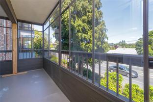 Location Location.....This 1200+ sq ft Condo offers everything you could need just minutes to UVic and some of the best shops and restaurants along the Shelbourne Corridor. Two Bedrooms with a full Master ensuite and 4 piece 2nd Bathroom. The kitchen is oversized with loads of storage. Newer Appliances, a Breakfast Bar and one of two balconies make this the kitchen of your dreams. The open concept Living/Dining with wood-burning fireplace also has a spacious office/den overlooking the private enclosed balcony. In-Suite laundry with room for storage and a 5 year new Washer and Dryer. Carpets were recently professionally cleaned. The building has recently completed a 2 year remediation project including new exteriors, windows and landscaping. This condo sparkles with Pride of Ownership. This won't last long, book your showing today.