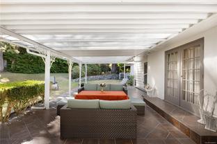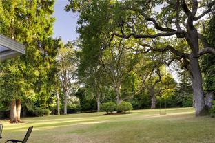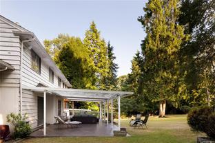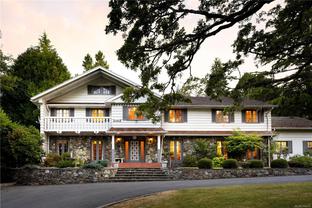 Tucked behind a canopy of mature trees on nearly an acre in the prestigious Uplands, 3460 Beach Drive is a legacy property with timeless appeal. This stately 5-bed, 3-bath home offers over 4,600 sqft of finished living space across 3 levels. Gracious principal rooms feature wood-beamed ceilings, oversized windows, and rich character details throughout. Designed for entertaining, the main floor opens to an expansive 42' covered patio overlooking lush, park-like grounds. Upstairs, the spacious primary suite features a private balcony, while the lower level boasts media room, sauna, and large rec room. The property also features a double garage, carport, treehouse, and garden beds—blending function & charm. A detached studio provides flexible space, ideal for an art studio, home gym, or private office. Located just moments from the Royal Victoria Yacht Club, Uplands Park, and the stunning shoreline, this is an exceptional opportunity in one of Victoria’s most sought-after neighbourhoods.