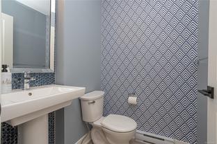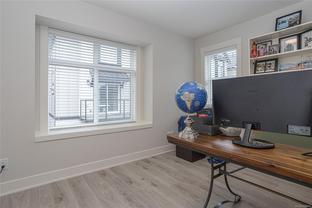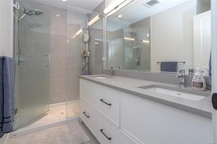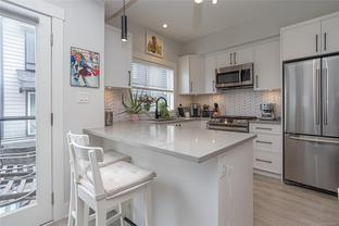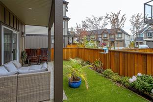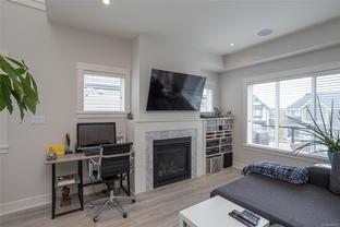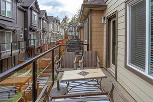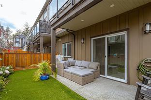 Pristine End-Unit Townhome in Southpoint Ridge, Bear Mountain! This bright, beautifully maintained 3-level townhome offers 4 bdrms, 4 baths & 2,105 sq ft of modern, functional living space. The main floor features a stylish open-concept kitchen w/quartz countertops, flowing into spacious living & dining areas. Step out to your private deck for BBQs & lounging. A 2-pc bath & double-car garage complete this level. Upstairs, enjoy 3 bedrooms, including a generous primary suite w/ a 4-pc en suite & walk-in closet, plus a full bath & laundry rm. The fully finished lower level is ideal for teens, guests, or in-laws, w/a family/rec room, 4th bdrm, 4-pc bath, storage, & walk-out covered patio leading to a fenced backyard. High end upgrades incl. a gas fireplace, on-demand hot water & ductless heat pump with 4 A/C heads. Ideally located w/easy highway access & close to the Westshore's growing array of shops, schools & amenities, offering a blend of luxury & practicality for comfortable living.
