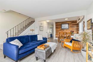 Don’t be fooled by the exterior—inside and out, this 3 bed, 2 bath half duplex is full of surprises. Step past the front and discover lush gardens with 9 fruit varieties, 4+ veggie beds, vibrant hydrangeas, and even a moonlight flower garden. Indoors, enjoy fresh updates including new flooring, lighting, baseboards, two renovated baths, and crisp white paint that suits any style. The main level offers a cozy gas fireplace with push-button start, spacious living/dining, and a kitchen opening onto a large deck and fenced yard. Bonus features include a 3-season Oasis, RV parking via movable rear gate, and room for more. Quiet neighbours, walkable to shops and parks—and best of all, no strata fees (only shared expense is insurance with neighbour).