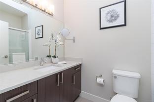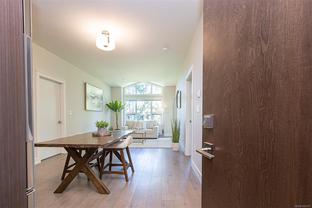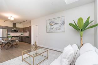 1900 Watkiss Way offers an ideal location surrounded by nature in this top floor unit with your private deck overlooking natural green space and a wooded path. You are welcomed with 9' Ceilings throughout and the bright and open living area separates 2 generous bedrooms. Primary bedroom has walk-thru closet to private 3pc ensuite. Quartz counters in kitchen with stainless appliances and glass backsplash. Both bathrooms have heated floors and granite counters. Secure underground parking and storage, as well as plenty of visitor parking in this well maintained community. The building also boasts a bike storage room, pets are welcome and rentals allowed. Conveniently located close to Eagle Creek Shopping and Highland Pacific Golf, Victoria General Hospital, Thetis lake and short drive to Downtown Victoria and the Westshore community. Immediate possession, move in today!