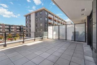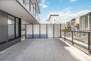 Welcome to Nest by Chard, a 2024 built 1 bed, 1 bath home in Victoria’s vibrant Harris Green neighbourhood. This 3rd floor unit offers an open-concept layout with large windows for abundant natural light and a spacious 400 sq/ft balcony with city views! The chef-inspired kitchen features sleek European cabinetry, solid quartz countertops and backsplash, and a fully integrated Fisher & Paykel appliance package. The bathroom includes a deep soaker tub, heated floors, and terrazzo-inspired porcelain tiles. Enjoy year-round comfort with in-suite A/C and a continuous fresh air supply system. Thoughtful touches like large entry storage, in-suite laundry and slim roller blinds add convenience. Building amenities include car and e-bike share programs, a fitness facility, dog wash station, children's play area, and secured bike locker and storage. Just steps to restaurants, cafes, shopping, entertainment, parks and beaches with a 94 walk score—perfect for urban professionals.
