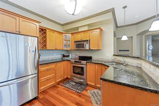Welcome to this European inspired condo features a 9ft. ceilings, arched doorways, hardwood floors, fireplace, spa inspired bathrooms and well appointed kitchen with granite countertops, stainless appliances and maple cabinets. Fabulous location with shops, grocery and restaurants, minutes away from UVic and major bus routes. Underground secure parking and storage. Dogs and cats allowed! Come make it your Destined Home! Tenanted at least 24-hour notice *