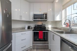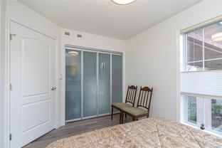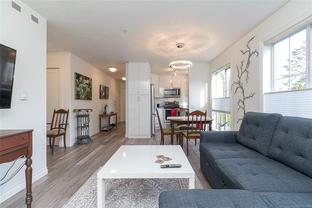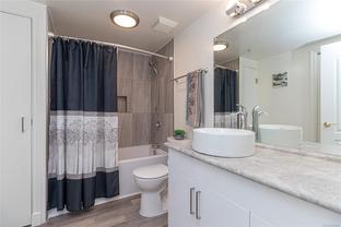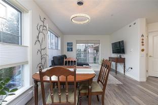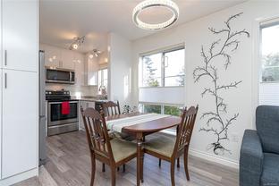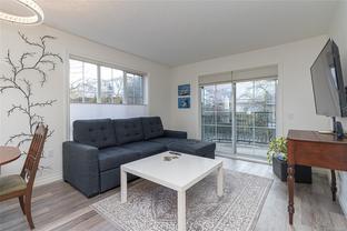 Bright 2nd Floor unit 55+ Bldg. Very nicely updated throughout incl. Vinyl plank flooring, completely renovated master bed. & cheater ensuite including, closet system with extra drawers. The bathroom has been updated with beautiful modern sink, tile & tub. Bright kitchen. Over sink window & redesigned pantry shelving unit. The kitchen cabinets have all been replaced with modern finishes with lots of storage. All windows floor to ceiling lighten the whole unit, & have been fitted with a modern blind system + screens. Building located across from shopping and services at Tillicum Centre incl. Save on Foods, Silver City Movie Theatre and much more. The is a corner suite on the backside of the building and is very quiet. No Parking space but wait list available. Over 55 bldg. If you use public transport or enjoy walking/riding this suite is for you. View it Today! All measurements approx.