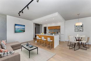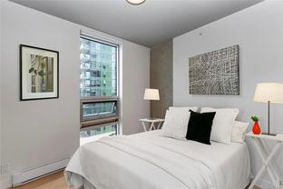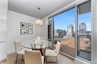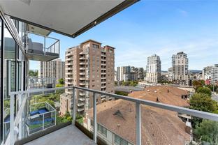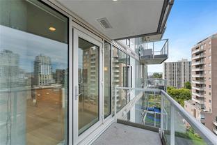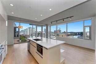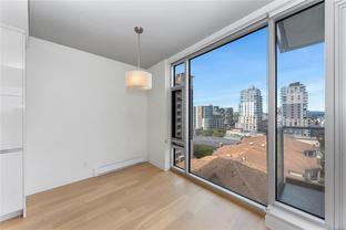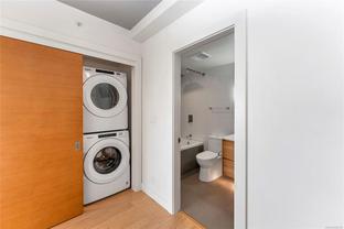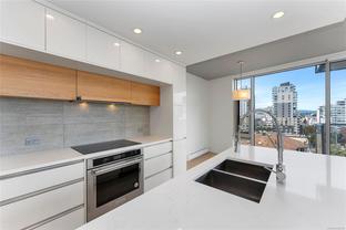 Welcome to 989 Johnson St. Beautiful corner unit with floor-to-ceiling windows, stunning panoramic views of downtown Victoria.This one bedroom unit features an open concept floor plan. Plenty of natural light. Contemporary designed kitchen with stainless steel appliances. New electric stove. Full laundry in suite. Walk score of 98. All amenities are just minutes away. EV charging stations in building. Pet friendly, secure underground parking and storage available. Come make it your Destined Home!