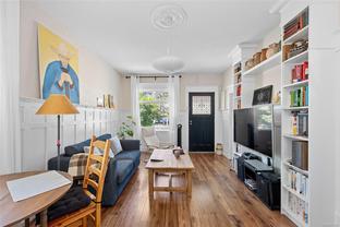 An exceptional opportunity in the highly desired Oaklands community! This charming cottage will surely impress & is the perfect alternative to a condo or townhouse. For those looking to step into the market or downsize, this 2Bed, 1Bath & 712 sq/ft home offers ONE-LEVEL living on an easy care lot. Feel at ease the moment you enter into the cute living & dining space which showcases character wainscotting, a cozy FP & abundant natural light. The updated kitchen boasts a Gas range, SS appls & smart shelving for extra storage w/easy access through a back mudroom to the rear South facing fully fenced yard - perfect for the kids & pets! The generous primary, updated bath & 2nd bed, which is ideal as a home-office or nursery, complete the home. Updates throughout since 2013/14' include electrical, plumbing, insulation, sound proofing, windows, floors, doors & more. Located right next to Oswald Park & just mins to Cedar Hill Rec Centre, Hillside Shopping Mall, dining & all amenities!