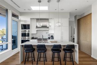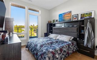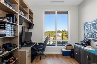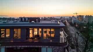 Welcome, YOUR new penthouse at Bellewood Park awaits! You'll enjoy views of the city and mountains from this exclusive 2 bedroom, 3 bathroom+ den home. The kitchen is loaded with top-of-the-line appliances: Wolf gas cooktop, double wall oven, double Blomberg refrigerator, and a Fisher & Paykel double-drawer dishwasher. For the wine enthusiast, a wine fridge is conveniently built-into you mini bar zone. Every detail in this penthouse has been meticulously curated: electric blinds, heated bathroom floors, providing warmth and comfort. The built-in outdoor patio heater allows you to enjoy the the beautiful views year-round, while the gas fireplace adds a cozy touch indoors. 10'8" ceilings and customized lighting throughout, the space feels open and inviting. Parking is a breeze with your Private 2-car garage and and additional 3rd parking with an EV charger, perfect for eco-conscious homeowners. All within minutes of downtown, Dallas Rd, Cook St village and more!