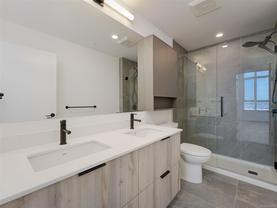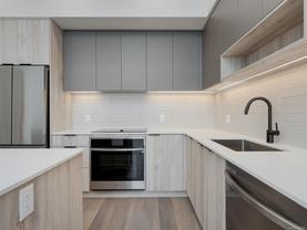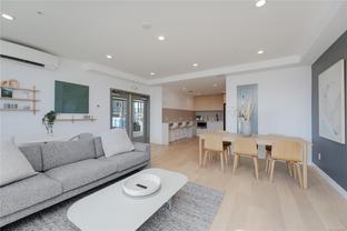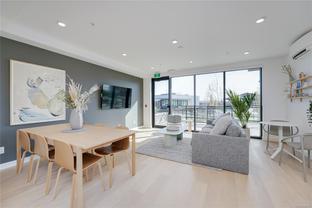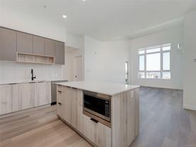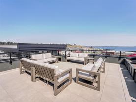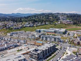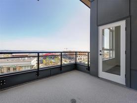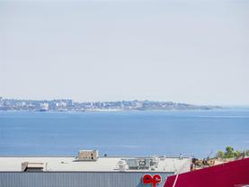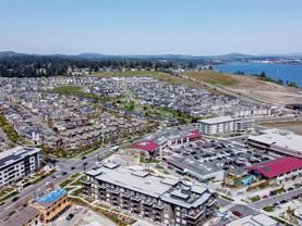 TOP FLOOR, ENDLESS OCEAN & OLYMPIC MOUNTAIN VIEWS! Your dream lifestyle awaits you at recently completed Eliza where you'll enjoy not only this building's GREAT amenities but just cross the street to buy your groceries, visit the dentist or meet your friends for coffee or a pint! Select few units have the 14' vault ceilings with an unimpeded view over the low-rise COMMONS commercial block - open your door to the ever-changing marine vista, be captivated from sunrise to sunset by light, weather & ships from your balcony, your Bedroom or as you move through your gorgeous space. Open, bright, quality finishes & BRAND NEW, never lived in! Underground parking, bike storage, dog wash/grooming station, Owners' Lounge, Gym, well furnished Rooftop Patio with BBQ Kitchen. Located in master-planned & community-minded Royal Bay, walking distance to the beach, shops, schools, trails & more. Unlike most competitors that are Plus GST, NO GST HERE, PRICED TO SELL!