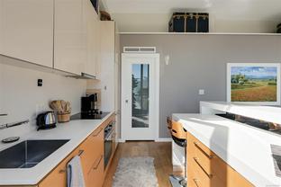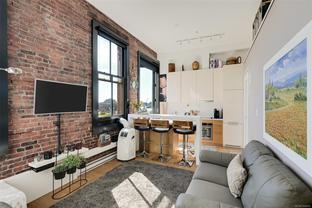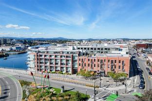 Experience urban living in the iconic Janion building, where heritage charm meets modern style. This bright SOUTH-FACING 2 bedroom features original exposed brick, oversized windows, and views of the bustling City, and Inner Harbour. Designed with efficiency in mind, it offers a built-in wall bed, integrated storage, engineered oak flooring, quartz countertops, a hidden-drawer dishwasher, refrigerator, freezer, and in-suite washer & dryer. Enjoy in-floor heating in the bathroom for added comfort. The Janion boasts premier amenities: rooftop terrace with BBQ and kitchen, fitness centre, conference room, bike/kayak storage, and internal beach access. Located in the heart of Downtown Victoria, steps to shops, dining, and the waterfront. Ideal for students, digital nomads, or snowbirds as it's fully-furnished, this New York style condo is your gateway to the best of the city. Location, lifestyle, and iconic views—this is modern living at its finest.