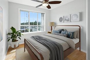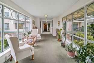 Welcome to Montague House! This top floor, southwest-facing suite is bathed in natural light, creating a bright and welcoming living space. Freshly painted, this spacious 2 bedroom layout features an open concept design, perfect for comfortable living and entertaining friends and family. Located in a well-maintained 55+ building, you'll enjoy access to fantastic amenities, including a social room, exercise area, and a rentable guest suite. Conveniently situated near trails along the Gorge, parks, shopping, banks, the library, coffee shops, and groceries, with transportation right at your doorstep. The building offers covered visitor parking, additional storage, and is well managed, with a waitlist for resident parking. One small furry friend (up to 25 lbs) is welcome. This is an ideal choice for downsizing or retirement, combining comfort and convenience in this exceptional community!
