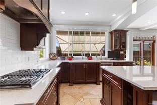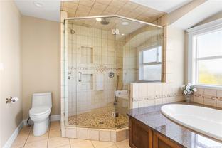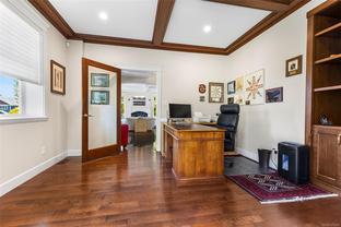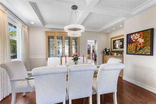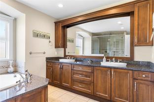 Welcome to 4973 La Quinta Place. This family home sits on a ¼-acre lot on a quiet cul-de-sac in Cordova Bay. Conveniently located within walking distance to Claremont Secondary School. Offering an impressive 5,000+ sq ft of open living space enhanced by high coffered ceilings, Cherrywood flooring, built-ins, marble tile, elegant molding details and more. Step inside to a well appointed interior where no detail has been overlooked. 5 beds, den + office, 6 bathrooms, & 2 self contained suites (1BR above garage and a 1BR + den garden level/Nanny suite) Ideal for multi-generational families or income generator. Thoughtful upgrades incl. coffered ceilings, quartz countertops, porcelain sink, gas cooktop, walk-in pantry, custom wine pantry, LED Light Fixtures, expansive laundry room, triple car garage, ducted heat pump, central vac, and a theatre room downstairs. The etched-glass patio doors lead to a textured concrete patio, covered by an electric awning for those hot summer days. The home is surrounded by a lush mature garden with stunning majestic palm trees and a low maintenance AstroTurf lawn, featuring a putting green for the Golf lover!