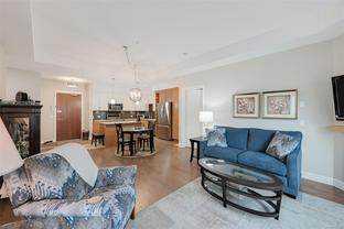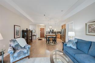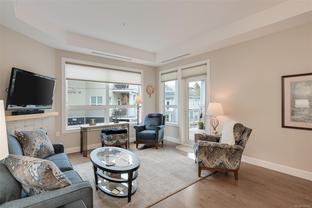 SELLER RELOCATION ! IMMACULATE CONDITION - NO GST -PRICED $70K BELOW ASSESSED VALUE - Pacific Landing is an Award Winning Waterfront Development just steps to a Sandy Beach with Accessable 650 ft of Shoreline, Bird Sanctuary (Blue Herons / Bald Eagles) , Hatley Castle, Royal Roads University with beautiful gardens & forested trails and nearby Galloping Goose Trail ! Spacious and Bright (1124 sq ft) Gorgeous 2nd Floor Suite has 10 ft ceilings, 2 Beautiful Large Bedrooms , 2 Full Bathrooms, open floor plan, Gourmet Kitchen w/ Designer Cabinetry, Quartz Countertops, Stylish Appliances BONUS ! Heat Pump - AIR CONDITIONING and Hot Water On Demand ! List of Features include Hardwood Flooring, Cozy Gas Fireplace, Heated Ceramic Floors, & Many Wonderful Upgrades ... Secure Underground Parking, Rentable, Pets and Separate Storage and Bike Storage. Large Deck (16X12) to Relax with Friends with gas hook up. Gardeners will really appreciate the onsite community garden. Seller is Very Motivated !