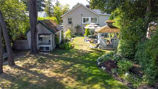 Fall in love with this charming character home! Lovingly cared for and thoughtfully updated, this timeless home blends classic charm with modern style. It features elegant coved ceilings, a beautifully renovated kitchen with quartz countertops, stainless steel appliances, and a tiled backsplash. The spa-inspired main bathroom boasts a generous walk-in shower. Stay comfortable year-round with a newer ducted heat pump and a one-year-old hot water tank. Step outside to your own private oasis—a beautifully landscaped, fully fenced yard with a detached garage. The flat lot offers excellent development potential, including the possibility of adding a carriage house (buyer to verify with municipality). Ideally located near parks, shops, the rec centre, and the Galloping Goose Trail. A rare gem with over a century of character—this is the one you’ve been waiting for!