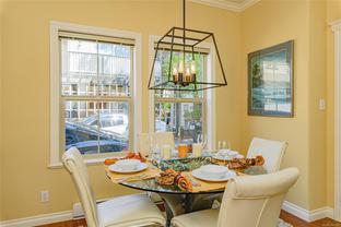 Lovely 2006 built 4 bedroom, 2.5 bath fully detached townhome. Quiet location just steps away from Memorial Park which has Music fests every Tuesday and Market nights on Thursdays in Summer. Also close to the Library, Country Grocer, Thriftys, and Saxe Point Public House. The main floor features 9 foot ceilings and a Spacious 19 foot long Living room with a cozy gas fireplace. The kitchen has Stainless appliances with a gas stove with the dining room off to one side. There is a nice private deck off the entrance which is a great spot to watch the setting sun. The laundry room and 2 pc bath complete this level. Upstairs has a wonderful primary bedroom with a bay window and walk in closet. The ensuite has a comfy soaker tub and heated tile flooring. There are 2 other bedrooms and a four-pc bath on this level. The lower level is accessed by a ladder and has the fourth bedroom along with a spacious crawlspace and workshop area with varying heights. Outside you can enjoy your own yard and garden area and there are 2 parking spots behind the home. This is the builders own home, and he has lived here since he built the 4 unit complex. Very low strata fee here at 146.00 per month with owners are responsible for their own maintenance of home. This home is in great shape and only needs a new owner. Available immediately and offered at only $999,900. Call your agent today.