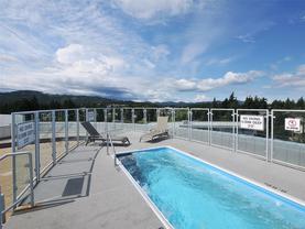 Bright and immaculate 1 bed condo in the popular Reflections building. Large windows let the light pour in. The roof-top pool, running track and outdoor patio take full advantage of the spectacular view. In-suite laundry, granite counters, stainless steel appliances, electric fireplace, and underground, secure parking make this a very desirable suite. Additional storage and underground car-wash bay are added advantages. Located in central Langford. Short walk to shops and services with very easy access to the Trans Canada Hwy. QUICK POSSESSION POSSIBLE.