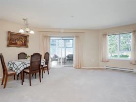 Welcome to this lovely South facing open floor plan which is wheelchair friendly with extra wide doors and a spacious layout. Features include in-suite laundry, spacious Primary as well as a second bedroom,entertainment size living room and Dining. Bright eat-in kitchen with plenty of cabinets and an Enclosed sun room to enjoy year round with access to private sunny terrace! .The complex offers a guest suite, exercise rm, hobby & game rm with pool table..i Pets are allowed,55+ and all in a very popular & friendly building.Close to shops medical, banks & transportation.Strata fees include Hot water,basic phone,internet and cable.