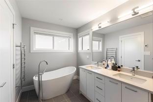 The Carriage Home Collection by Verity. This stunning 4 bed, 3 bath main home with a detached 1 bed, 1 bath carriage suite over the garage offers style, space, and versatility. Upgrades include quartz counters on all surfaces, stainless steel appliances with gas range, and an abundance of cabinetry and storage. The open-concept layout is perfect for entertaining while offering privacy and functionality for daily living. Enjoy one of the largest yards in the community—fully fenced, irrigated, and ideal for kids, pets, or gardening. The carriage suite is privately positioned facing the laneway. Located near all levels of schools, the Jordie Lunn bike park, Rhino Coffee, Langford Lake, the YMCA, and major shopping—all within walking distance. A perfect setup for multigenerational families or an excellent income-generating opportunity. Move-in ready and packed with value, this home truly checks all the boxes for lifestyle, comfort, and investment.
