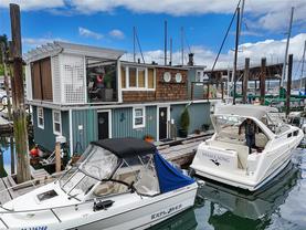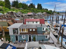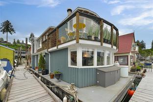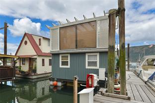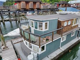 WEST COAST LIFESTYLE IN COWICHAN BAY. Discover the ideal weekend retreat or embrace year-round waterfront living in this quaint and cozy float home. Enjoy waking up to stunning panoramic ocean and mountain views from your bed or sip on your coffee in the open-concept main level, featuring a "Home Chef's" kitchen with island and a walk-in pantry. This home has been tastefully updated, including a refreshed bathroom with a new shower, bamboo vanity and sink. Durable laminate flooring flows throughout, offering both style and practicality. Upstairs, you'll find two cozy bedrooms and a private sunroom that opens onto a deck and your own slice of outdoor serenity. New bilge pumps, dedicated parking, 220 power. ALL furnishings, linen, tableware and appliances INCLUDED!!! —just move in and start living the float home lifestyle. You're just steps away from local shops, restaurants, and arguably the best bakery in the valley. Don’t miss your chance to be part of this amazing seaside community!