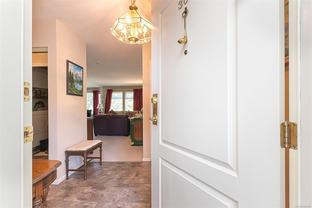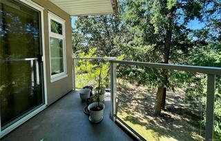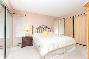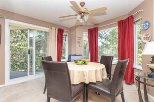 Welcome to Royal Oak Estates! This bright and spacious 2-bedroom, 2-bathroom corner condo offers 1,155 sq ft of comfortable living with a smart layout that places bedrooms on opposite ends for added privacy. The large living room with fireplace is next to the dining room that has direct access to the deck overlooking a treed greenspace. There's a generous kitchen that features a charming eat-in nook overlooking the deck. The primary bedroom includes a 4-piece en-suite and access to a private balcony with peaceful views of surrounding greenery. Additional highlights include in-suite laundry with storage, a separate storage locker, and an assigned parking stall. This well-managed building is ideally located just steps to the Commonwealth Pool, top-rated schools, Elk/Beaver Lake Regional Park for hiking & swimming.The neighbourhood is hard to beat with transit at your door step & Broadmead/Royal Oak Shopping Villages with all the shopping as well as amazing restaurants & coffee shops.