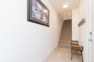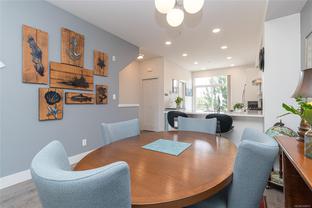 Experience luxurious coastal living at its finest in this stunning executive townhome nestled within the prestigious community of Royal Bay in Colwood, BC. Built in 2019 by Gable Craft Homes, this meticulously crafted residence boasts modern elegance and timeless sophistication. Step inside to discover a spacious and inviting layout, featuring 3 bedrooms and 2.5 bathrooms. Entertain guests effortlessly in the gourmet kitchen, adorned with sleek quartz countertops, a natural gas range, dishwasher, range hood, microwave, and fridge. The kitchen flows seamlessly into the open-concept living and dining area, highlighted by soaring 9-foot ceilings and abundant natural light. The attached garage provides ample storage and parking. A fully fenced private yard, complete with irrigation, offers a serene oasis for outdoor entertainment. Enjoy peace of mind with on-demand hot water, natural gas forced air heating, ensuring comfort and safety throughout the seasons.