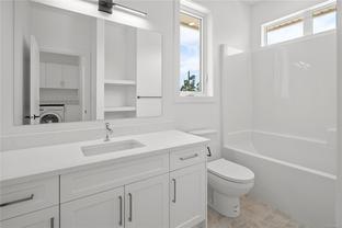 Centrally located in the popular Glanford neighbourhood, this 4-bed, 2-bath half duplex offers space, comfort, and efficiency. Upstairs you’ll find all bedrooms plus convenient laundry. Downstairs, the bright main level features a large U-shaped kitchen with stainless steel appliances and an eating peninsula—perfect for family life and casual entertaining. Laminate flooring flows throughout, and year-round comfort is handled by a high-efficiency heat pump with separate zones for each floor. Hot water is provided by a modern heat pump tank. A single-car EV ready garage, built-in vacuum, and a handy 3’ crawlspace for storage round out the home. Quality-built by a local builder with decades of experience building in Greater Victoria. A smart choice in a family-friendly neighbourhood close to parks, schools, and every amenity. Move-in ready and low-maintenance, this is an ideal home for growing families or anyone seeking unbeatable value in a central location.