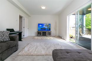 Immaculate 4-bedroom, 3-bathroom townhouse in the sought-after Westhills community of Langford, providing west coast living at its best with peaceful forest and mountain views! This like-new home showcases high-end developer upgrades throughout, including premium flooring, a gas fireplace, quartz waterfall island, pantry, gas stove and stainless-steel appliances. Designed for both style and function, it features a spacious ground-level rec room and an open concept main level living area with kitchen, both with private patio access. Enjoy stunning Mount Wells views from every level, an oversized primary bedroom with walk-in closet, generous storage, and parking for two vehicles, including a secure single garage. Ideally situated near lakes, trails, the Jordie Lunn Bike Park, YMCA, shopping, and quick highway access to Victoria, Sooke, and up Island. Walking distance to newly developed schools including Pexsisen Elementary, Centre Mountain Lellum Middle and Belmont Secondary. A perfect fit for families seeking a vibrant, outdoor-oriented lifestyle in a beautifully maintained, move-in-ready home.