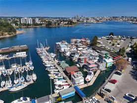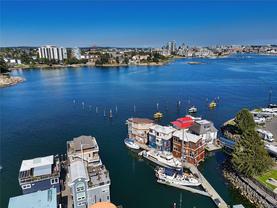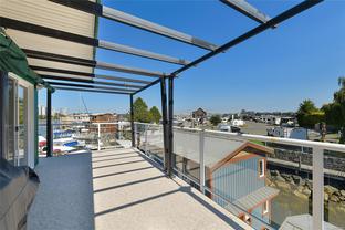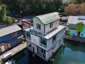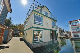 Tucked into the picturesque Salish Seaside RV Resort & Marina on the Esquimalt side of Victoria’s inner harbour, this remarkable float home offers the quintessential oceanic lifestyle with fresh sea breezes and panoramic views. This home features a durable concrete and foam-filled hull and a metal roof for peace of mind. The layout spans three levels, beginning with a spacious main floor Primary bedroom that includes a waterfront deck, ensuite bathroom, and a generous walk-in closet. The lower level provides 2 bedrooms, a full 4-piece bathroom, laundry, and utility room perfect for family or guests. On the main level, you’ll find an inviting living room with cozy gas fireplace, dining area, cozy eating nook, well-appointed kitchen, and an additional bathroom. The upper level is an entertainer’s dream, with a bright family room, home office, enclosed wet bar, and expansive wrap-around deck showcasing breathtaking ocean views. Offering a blend of charm and waterfront tranquility.
