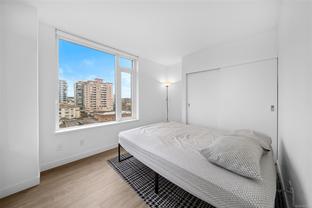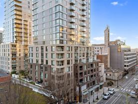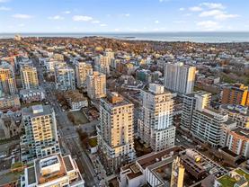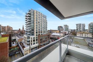 Own this stylish 1-bed, 1-bath condo in Vivid at Yates, built in 2021 in the heart of downtown. Enjoy sleek quartz countertops in the kitchen, open to the living room with private patio, perfect for entertaining. Including in-suite laundry, a storage locker, and secure bike storage. Enjoy unbeatable convenience with restaurants, groceries, gyms, theaters, and transit just steps away. Bike paths connect you to the city, and both monthly parking rentals (buyers to verify availability) and street parking options are available. Free guest parking available. Unrestricted rentals, pet-friendly, and a professionally managed strata provide peace of mind, making this an ideal investment opportunity. No AHOP/BC Housing requirements on this Unit. Relax on the shared rooftop patio with BBQs, seating areas, dog run, and veggie garden plots—perfect for morning coffee or entertaining with scenic city views. Don’t miss this incredible opportunity to experience vibrant downtown living at its finest!