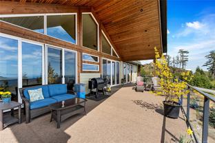 Welcome to 4101 Ridgeline! 3,000 sq ft custom home perched high on top of the ridge with breathtaking views. Endless possibilities for all. Natural light fills all the living spaces, while the 500 sq ft deck is perfect for entertaining - or relaxing - against a backdrop of coastal mountain vistas. Inside, the great room boasts a soaring 17-ft vaulted ceiling, and the chef's dream kitchen features solid wood cabinetry, island, high-end gas burners, separate pantries & stainless steel fridge. With 3 spacious bedrooms—including a primary retreat with walk-in closet, spa-like ensuite, this home is ideal for the retired couple who wants privacy and lots of room for family to stay and visit. The double garage with EV charger offers ample room for 2 cars with more room on the oversized driveway. RV parking. Hot tub. Workshop. Any concerns about the drive to town? Don't worry - you have a large wine cellar! Discover the endless possibilities. A must-see view that promises to leave you in awe.