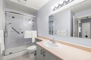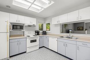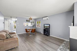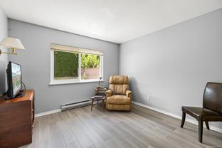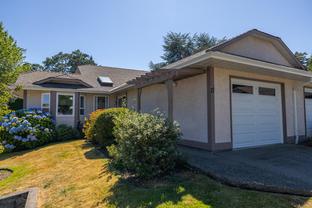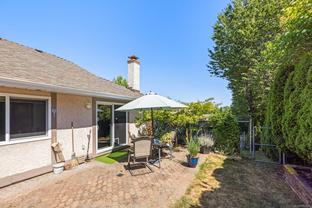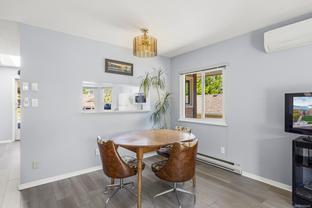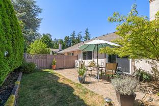 Looking for a one-level pet friendly townhome in a central location? This 2-bedroom, 1-bath home with a 1-car garage is tucked just minutes from downtown on Interurban Road. Located in a level, walkable complex near the Panama Flats trail system, it offers a quiet, convenient lifestyle. Inside, the kitchen features ample counter space, a pantry, and a bright breakfast nook. The spacious living/dining area includes a cozy electric fireplace and sliding doors to a sunny south-facing patio. The primary bedroom has a four-piece ensuite, while the second bedroom (or den) overlooks the private backyard. This home is freshly painted with updated flooring, newer double paned windows and a heat pump for heating and air conditioning. It's ideal for down-sizers or first-time buyers.