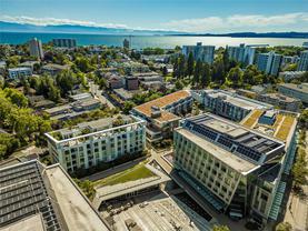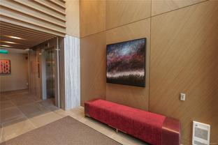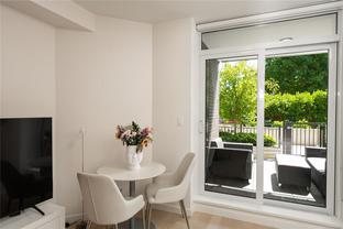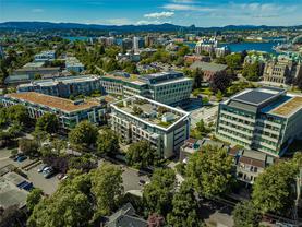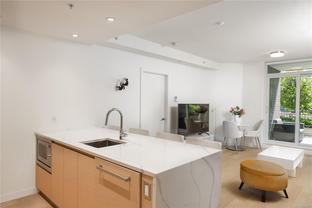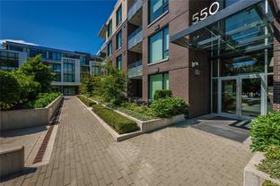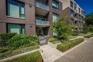 Welcome to Capital Park, a boutique 5-storey steel & concrete development built to the highest standards. Enjoy inviting courtyards, peaceful walkways & calming water features, all nestled in charming James Bay, just steps from the scenic Inner Harbour. This south-facing home offers a convenient townhouse-style private entrance through a spacious 151 square-foot fenced & gated terrace surrounded by lush landscaping. Inside, white oak flooring flows throughout, with in-floor electric heating in the bathrooms for added comfort. The modern kitchen features flat-panel cabinetry, quartz countertops & backsplashes, a striking quartz waterfall island & fully integrated Bosch appliances designed for easy cooking & entertaining. Residents enjoy exclusive access to a stylish lounge opening onto a large terrace & a well-equipped fitness studio. Secure underground parking provides indoor access to Red Barn Grocery & the Victoria Public Library. Enjoy sophisticated living in an exceptional location.