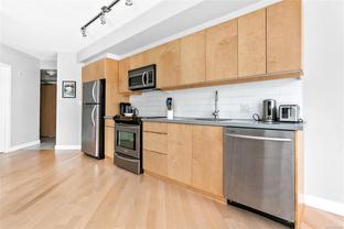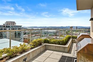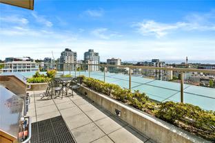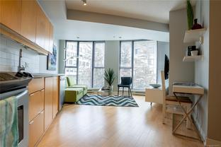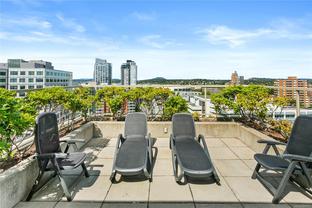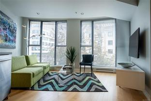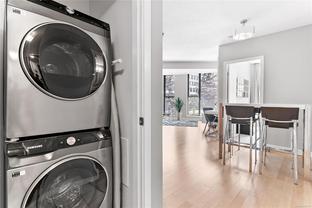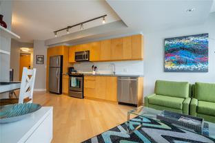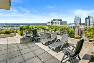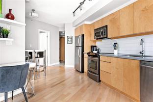 Welcome to this bright and functional 1 bedroom, 1 bathroom condo in the sought-after Juliet building at 760 Johnson Street. Offering 584 sq. ft. of thoughtfully designed living space, this south-facing home features an open-concept layout with a modern kitchen equipped with stainless steel appliances, wood-tone cabinetry, and a seamless flow into the dining and living areas with expansive windows. The spacious bedroom includes a large closet and direct access to a sleek 4-piece bathroom. This well-maintained suite has been updated with new hardwood flooring and carpet, and includes a new in-suite washer and dryer for added convenience. Additional highlights include a same-floor storage unit and access to an impressive rooftop terrace with 360-degree city views, BBQs, and seating—perfect for enjoying life above the city. Just steps from cafés, shops, gyms, the YMCA, theatres, and everything downtown Victoria has to offer.