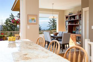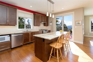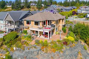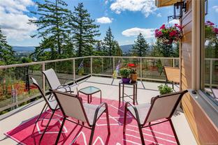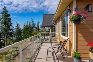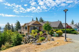 Welcome to this beautifully crafted 3 bed, 3 bath custom home in coveted Stone Ridge Estates, perfectly positioned at the end of a quiet cul-de-sac. Backing onto Stone Creek Place Park on two sides, this private 7,567 sq ft lot offers stunning views over the Sooke Hills, Juan de Fuca Strait, and Sooke Harbour. With almost 2,400 sq ft of thoughtfully designed living space, the main level offers true one-level living: kitchen, dining, living, and primary suite—all with engineered hardwood and custom window coverings. Enjoy cooking in the gorgeous open kitchen with granite counters, maple cabinetry, and a 7.5 ft island offering great separation for two to cook! The expansive wrap-around deck is a morning favourite, surrounded by beautiful trees & birdsong. Downstairs offers two bedrooms, media room, and a cool, bonus wine/canning storage room. Low-maintenance yard, large guest bedroom with walk-in closet, and just 5 minutes to shops and trails—this is West Coast living at its finest.