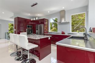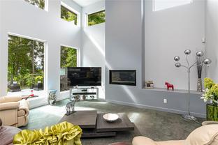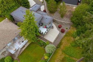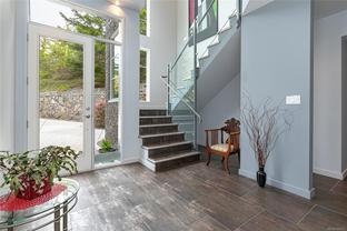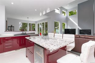 Experience the ultimate West Coast lifestyle in this custom-built luxury home on an expansive 11,944 sq ft low maintenance lot with no rear neighbours (Outlook Park). A dramatic 19’ foyer leads to a bright, sun-filled interior with two bedrooms on the main floor, a private office (fully plumbed), and a spacious family room opening to the outdoors. Floor-to-ceiling windows showcase ever-changing views. The upper level features a striking kitchen with cranberry Italian cabinetry, high-end appliances, granite island, Stainless Steel countertops, and wine fridge. Open dining and living areas with 15’ ceilings and a gas fireplace offer a warm, inviting atmosphere. The primary suite boasts a spa-inspired 5pc ensuite and spacious his/hers walk-through closet. Extensive decks and patios provide seamless indoor-outdoor living. Enjoy nearby parks, scenic trails, Royal Bay beaches—all just minutes from your door.