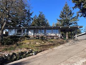 Perched at the top of this very large 0.65 acre lot (feels very rural) is a nicely renovated 3 bed 1 bath rancher with a 398 SqFt 1 Bed plus Bath auxiliary building. This lot is ideal for any buyer who likes gardening or needs parking for all the toys/work vehicles. Renovations include new roof, new windows, new 200 amp service, new flooring, new paint, new kitchen, new bathrooms, new appliances, new 4 head split heat pump and a completely rebuilt 398 SqFt auxiliary building. Great location. Get your daily dose of vitamin D from the loads of natural light coming through the large south facing windows. Water views, RV parking, storage shed, quartz countertops with under mount sinks and a nice patio spot in the front to take it all in. The auxiliary building is perfect for a home office or guest/in-law accommodation. If you're thinking of future development then inquire at View Royal about changes to zoning that may allow a 4-plex to be constructed.