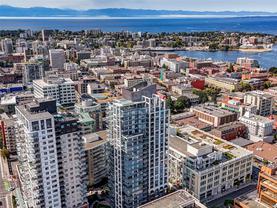Absolutely gorgeous 2 bed 2 bath executive unit now available in the sought after Hudson One. You'll feel so lucky to live at 777 Herald Street where the panoramic views are spectacular! Exceptional quality throughout, this iconic building boasts over 11,000 sq ft of premium amenities including a fitness studio, games room, hobby room, infrared sauna, outdoor courtyard, business centre, fabulous concierge, social lounge, secure bike storage, guest suite and this unit comes with 2 underground parking spots side by side! If you still need convincing-wait until you step into this unit...floor to ceiling windows, quartz countertops, custom touches such as a beautiful built in desk and built-in closet organizers. The heated tile floor in the spacious ensuite is a welcome treat on those cool Autumn mornings. If you work from home you'll have the best of everything here! Steps to the Inner Harbour, Empress Hotel, fantastic dining, parks, walk to the hockey game and concerts...welcome home!